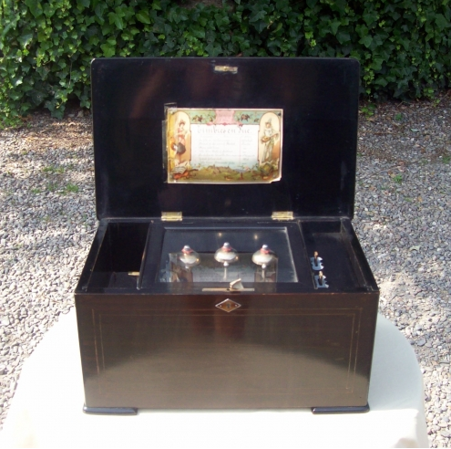 A good 19th century rosewood cased eight air, three bells in sight cylinder musical box.