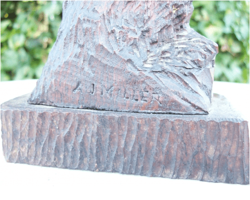 A circa 1900 finely carved oak eagle with naturalistic base signed A.J. Miller.