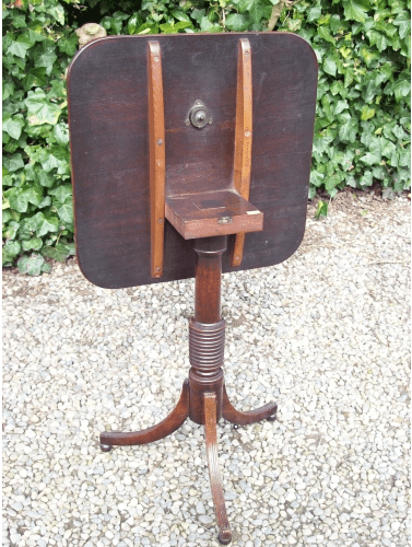 Here we have a late Victorian mahogany tripod tilt top occasional table. The usefulness of this table is immediately apparent as when it is not in use, you can release a catch which will tilt the table surface and therefore can be easily stored. The top is supported by a turuned column with three legs terminating in small bun feet.